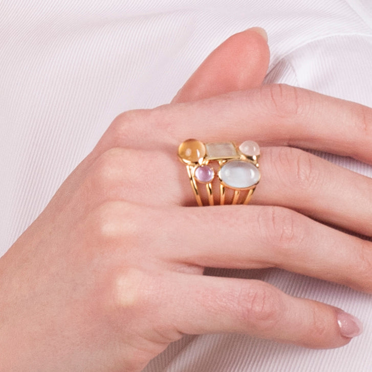 Cabochon Vermeil Five Strand Multi-Stone Ring - 070