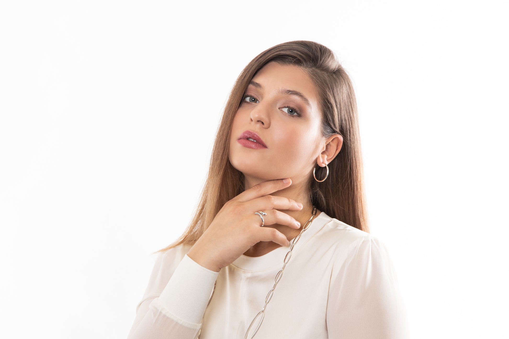 A simple and elegant cross over ring with rounded ends in solid Sterling silver.