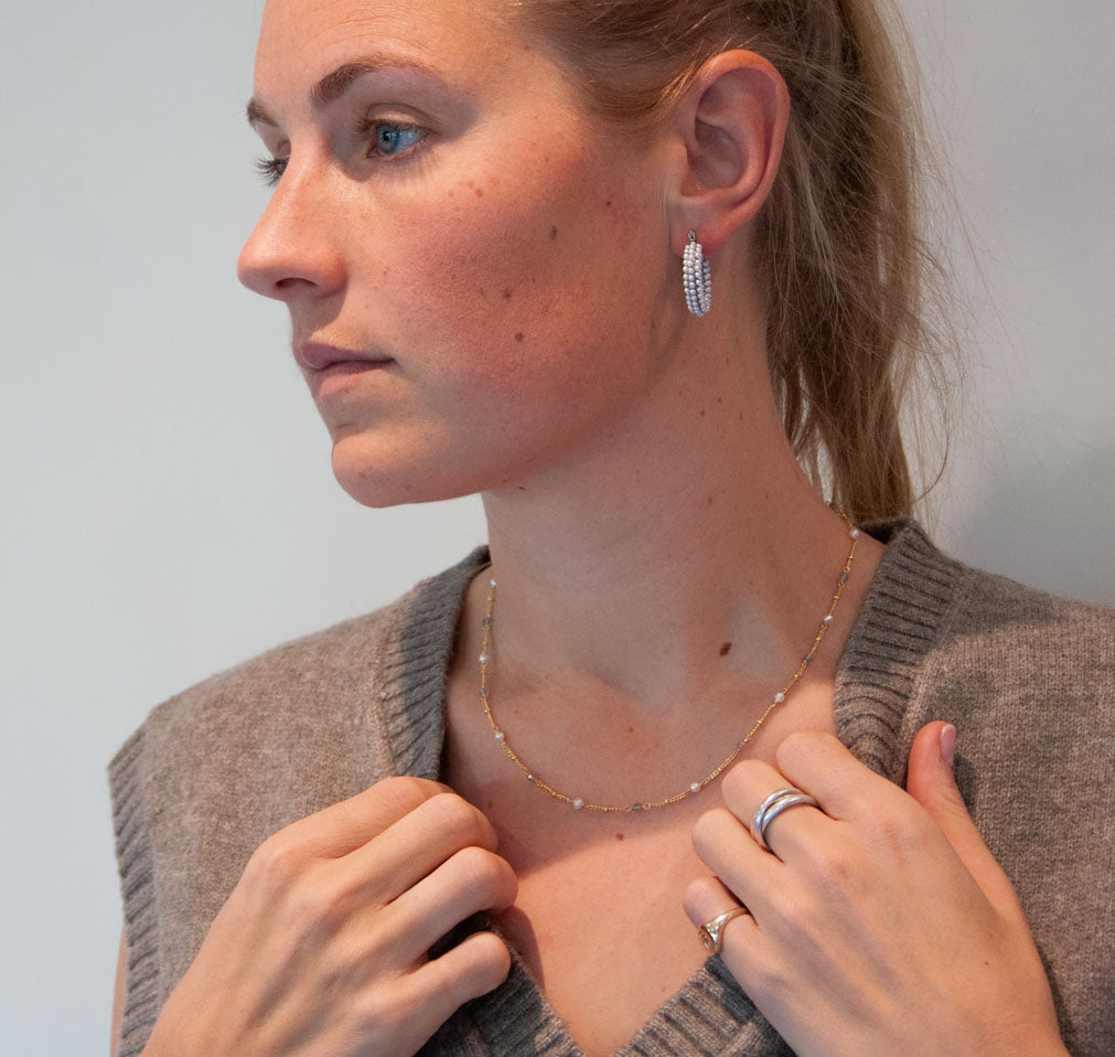A 18k Gold Plated Silver satellite chain necklace, interspersed with semi-precious gemstone and freshwater pearl beads. Available in two lengths - perfect for layering!