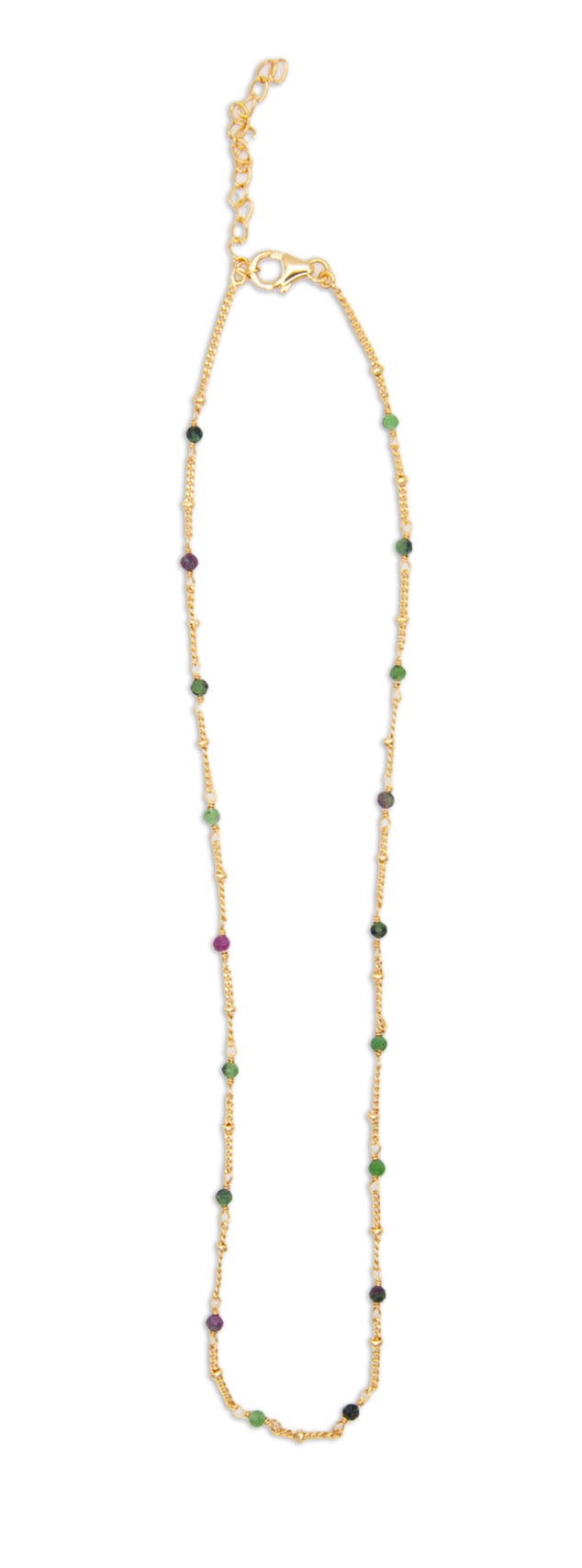 A 18k Gold plated silver satellite chain necklace, interspersed with semi-precious gemstones.