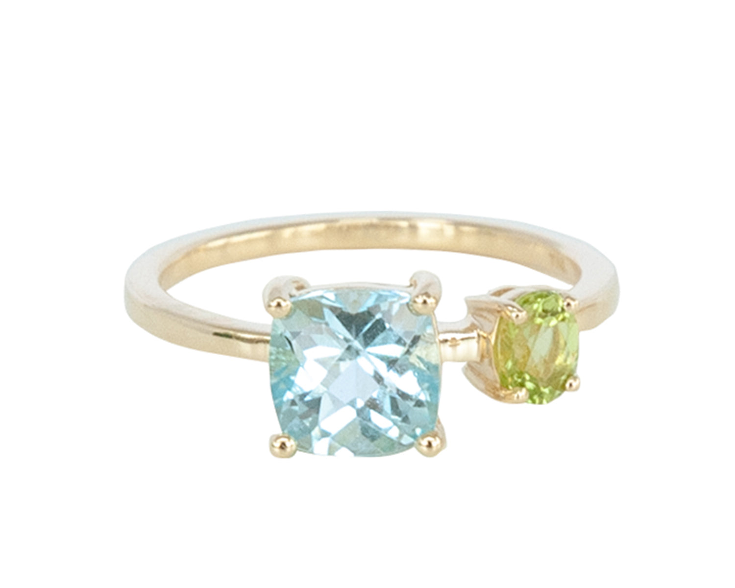 Blue Topaz and Peridot 9ct Gold Square Stone Ring - 066