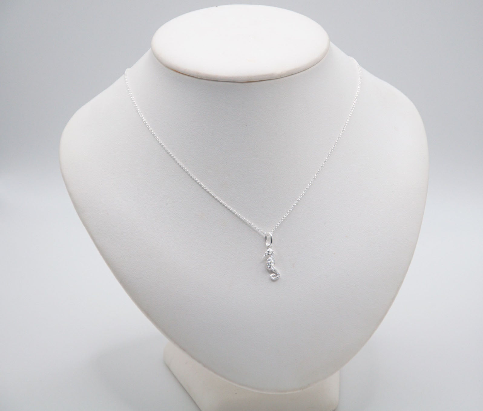 This unique Silver Origins ® Sterling Silver pendant features the distinctive design of the seahorse. Created by Cornish jewellery designers who take their inspiration from the organic forms of the coast, this pendant will brighten up any outfit.