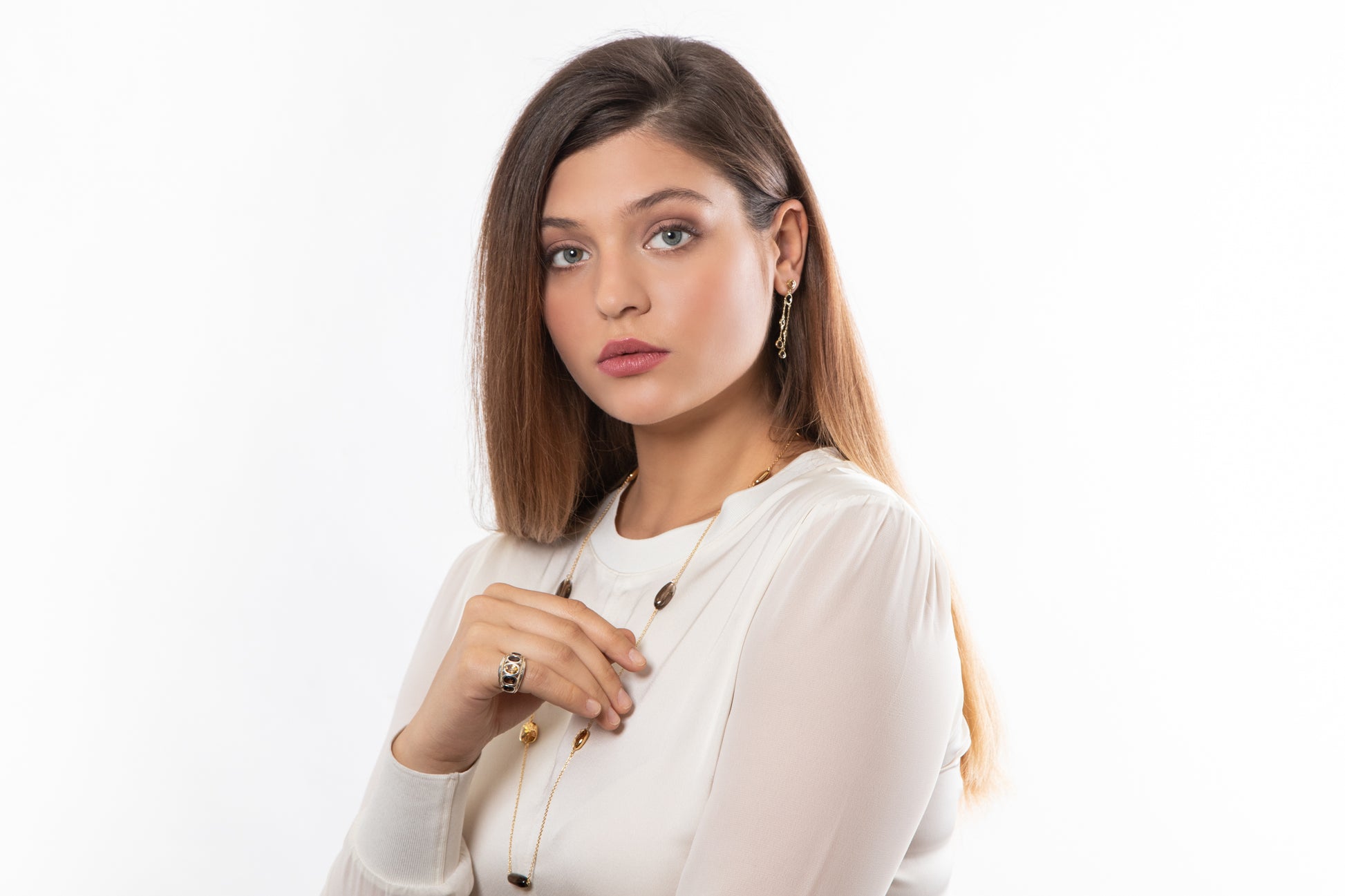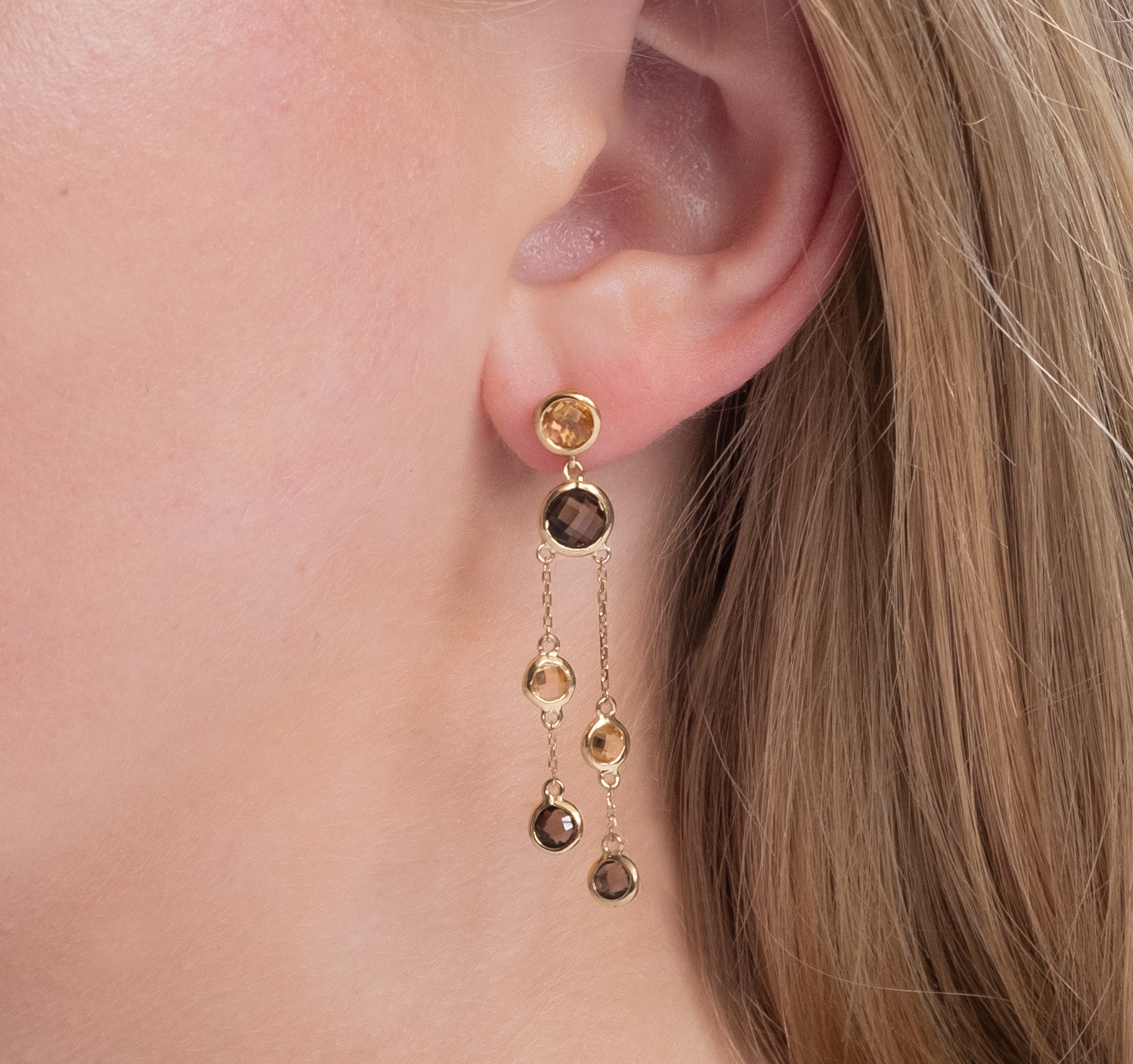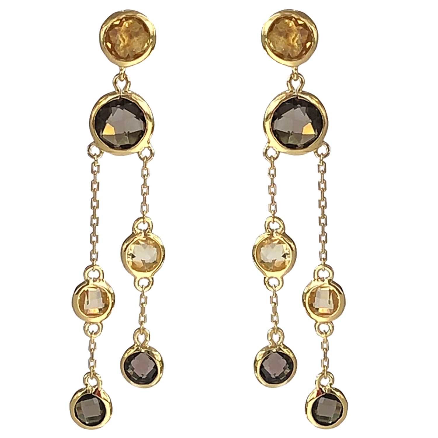 Citrine and Smoky Quartz 14ct Gold Vermeil Double Strand Drop Earrings - 012